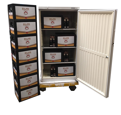 De koelkast is niet bedoeld voor het koelen van etenswaren. Deze service wordt enkel aangeboden als extra service vanuit onze drankenhandel — wij zijn geen verhuurbedrijf.